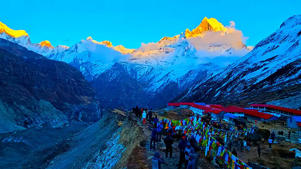 This classic trek takes you into the heart of the Annapurna Sanctuary, offering stunning diversity from lush foothills to a dramatic high-mountain amphitheater. The journey combines cultural immersion in Gurung villages with unparalleled close-up views of the Annapurna range.